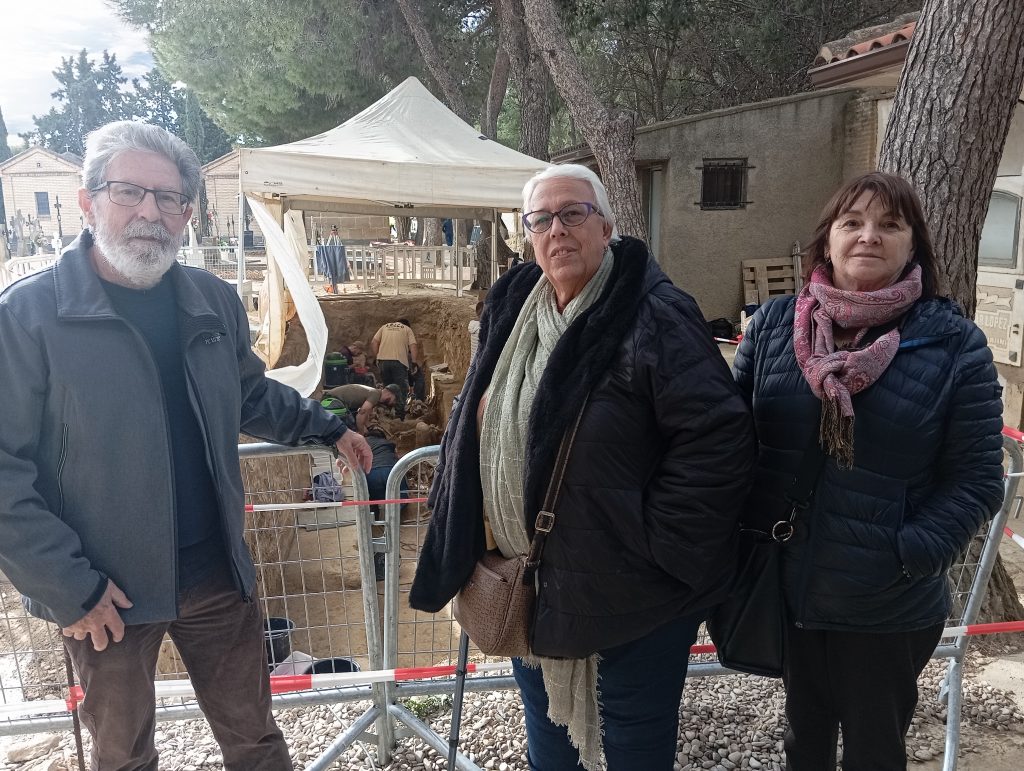 La Presidenta de PAMA, Anabel Alonso, el Secretario Adolfo Barrena y la representante de la Amical de Mauthausen, Elena Blasco visitaron los trabajos de exhumación en el cementerio de Ejea de los Caballeros, donde se estima que fueron enterradas más de 180 personas asesinadas por el franquismo en 1936.